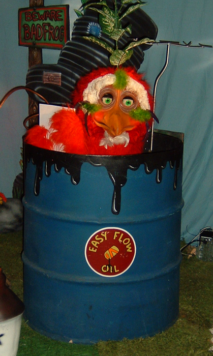 The Looney Bird originated from the Hard Luck Bears show, his predecessor being essentially the same character who was named 'Gooney Bird'. Looney Bird was voiced by Aaron Fechter and in the early days had quite the insane personality. As you might expect, a character that lives in an old oil barrel would be a little tipsy - and Looney Bird was definitely drunk most of the time. Many shows gave reference to Looney siphoning away Billy Bob's 'gasahol' (sometimes referred to as 'Goofy Gas') which was meant to solve the woes of the second energy crisis of the late 1970s / early 1980s.
