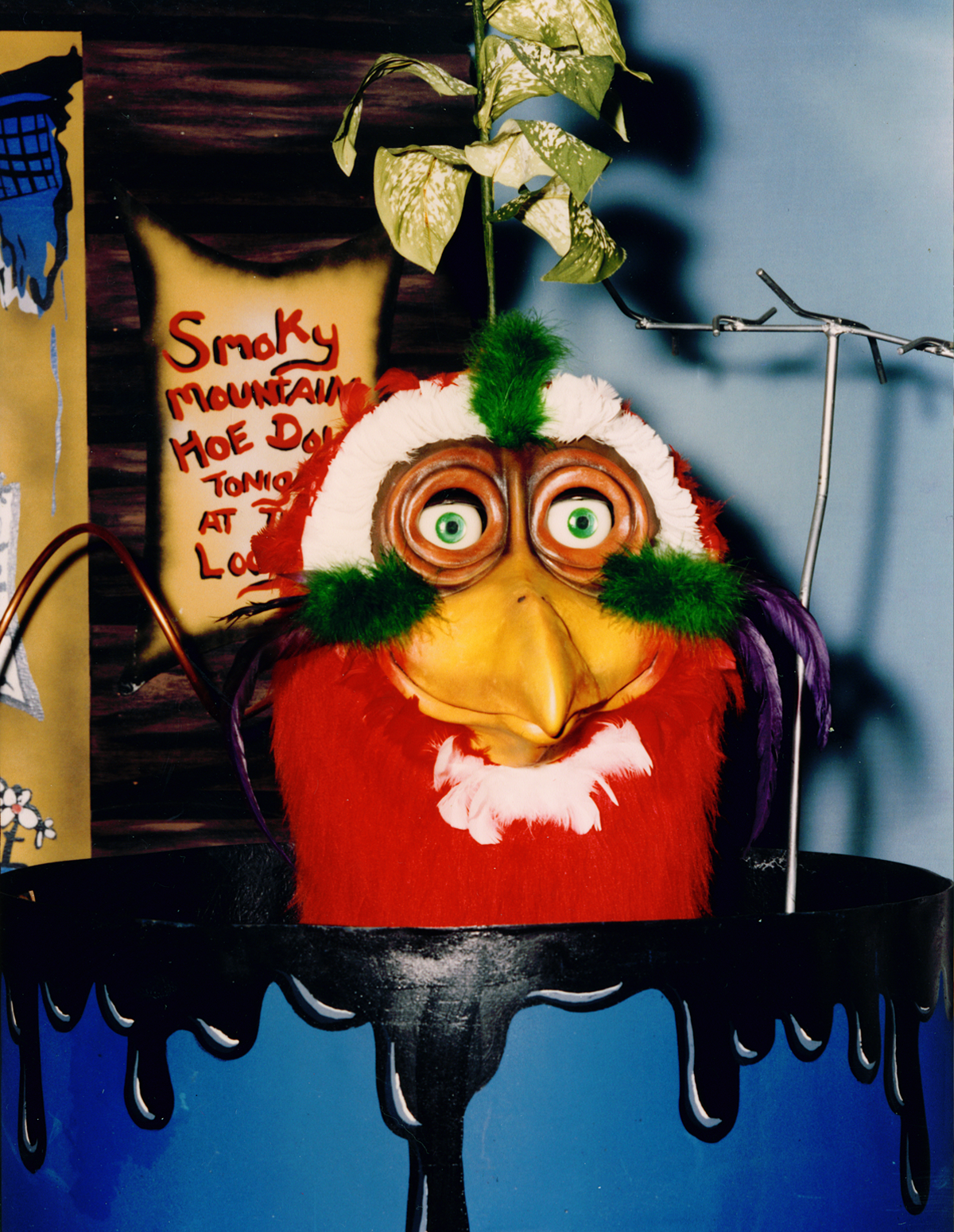 The Looney Bird was Billy Bob's sidekick who went from a mischievous 'gasaholic' to a 'tech-nerd bird'. He was always reliable for comic relief, and over the years was given quite the prominent position among Rock-afire characters - even outranking Billy Bob in terms of exposure in the late 1990s.