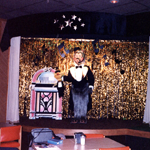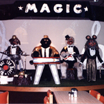 In the mid-80s, ShowBiz designed a 'new' Rock-afire stage, complete with new character costumes. It is tentatively known as the "Magic" stage, because of the printing on the center stage valance - although the stage better resembles a Bandstand / Variety Show.