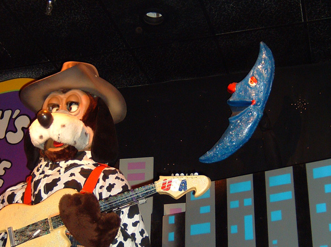 The Rock-afire Explosion was designed to be an entertaining and immersive animatronic show. This extended beyond the "larger than life" main cast of characters, and all around the stages were a supporting cast of Prop Characters. These characters were sometimes static, sometimes in motion, and some even had speaking roles and could interact directly with the main characters. This is a listing of the other characters that you might discover while watching the Rock-afire Explosion perform.