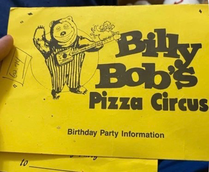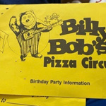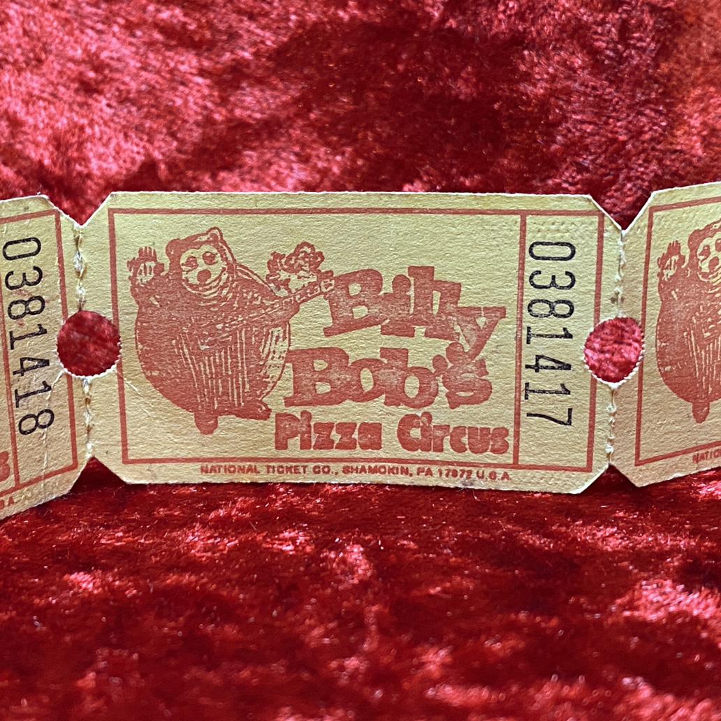 Billy Bob’s Pizza Circus opened in December of 1990 and was owned by Steve Astrin. Beyond simply installing a Rock-afire Explosion show, he named the business after the character Billy Bob, prominently making him the restaurant's mascot. Billy Bob appeared on tickets, tokens, merchandise, painted murals on the walls of the store, and even disposable items.