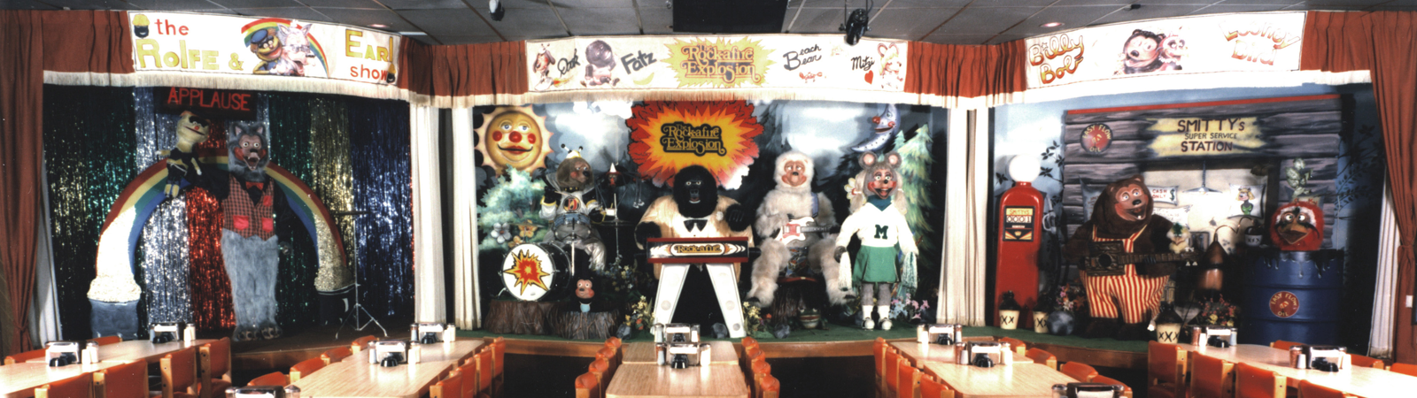 Although the Rock-afire Explosion has taken on new life after the conversion of ShowBiz Pizza Place to Chuck E. Cheese's, it is important to remember that the Rock-afire Explosion was designed specifically for ShowBiz. Much work and thought was put into the design and structuring of the stage which explains why many elements of the Rock-afire Explosion are still present nearly 30 years after its creation.