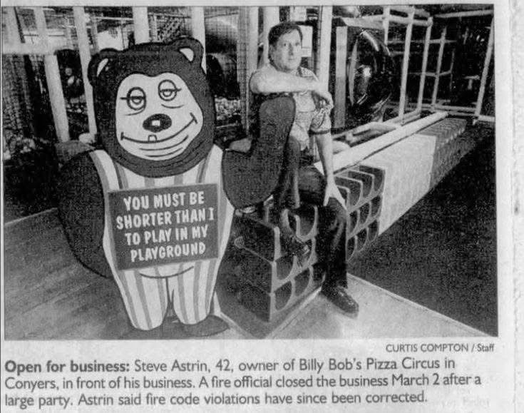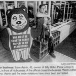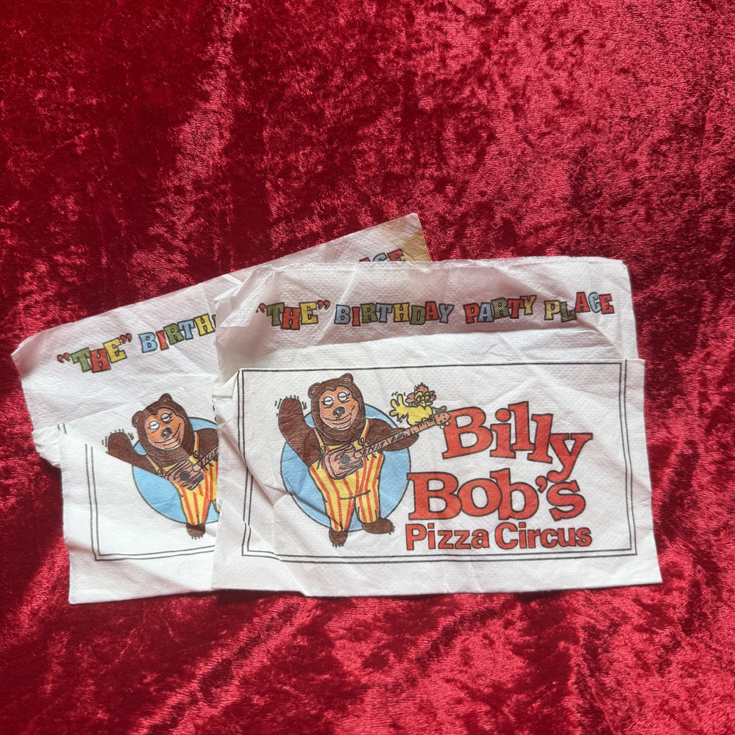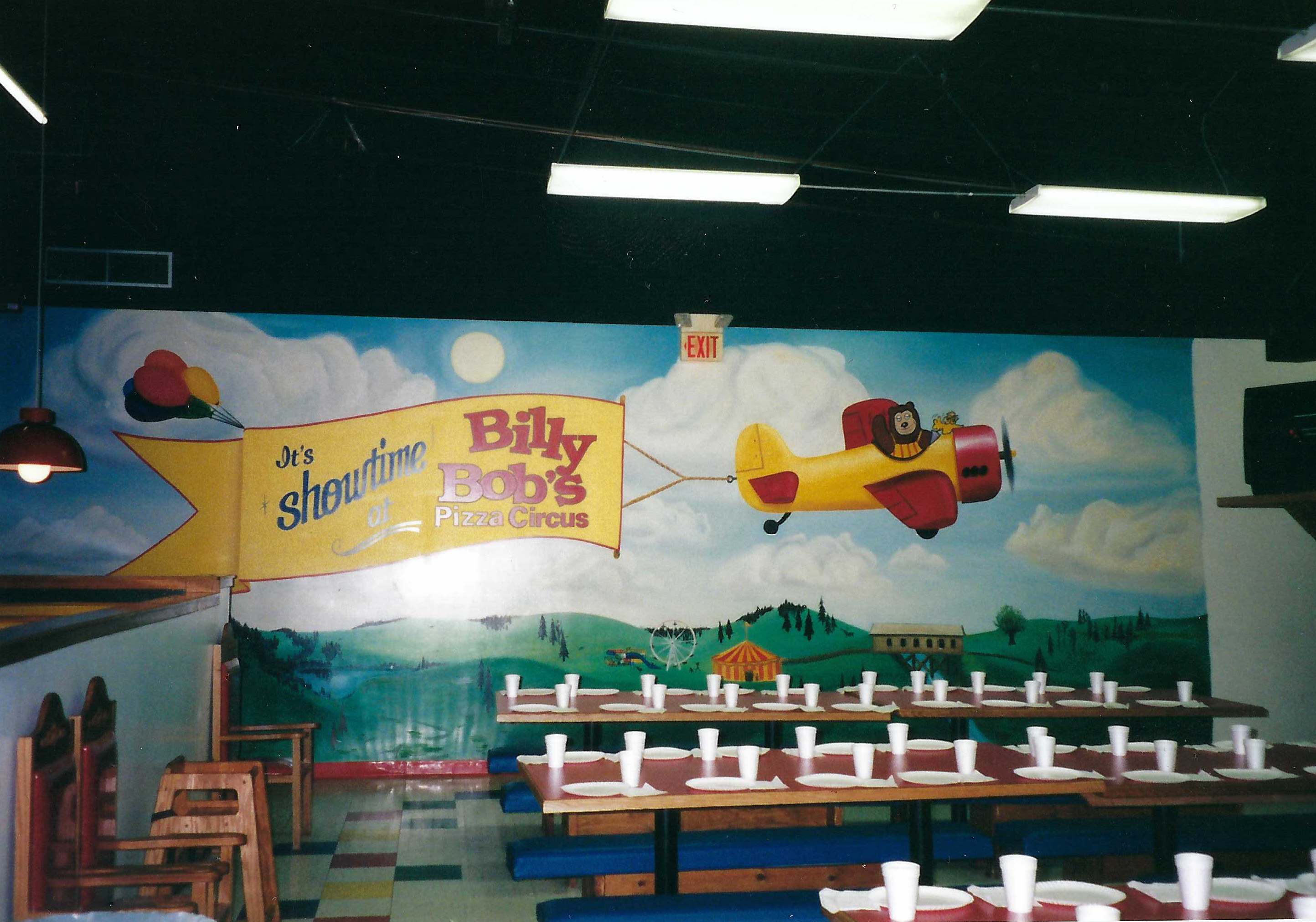 Billy Bob’s Pizza Circus opened in December of 1990 and was owned by Steve Astrin. Beyond simply installing a Rock-afire Explosion show, he named the business after the character Billy Bob, prominently making him the restaurant's mascot. Billy Bob appeared on tickets, tokens, merchandise, painted murals on the walls of the store, and even disposable items.