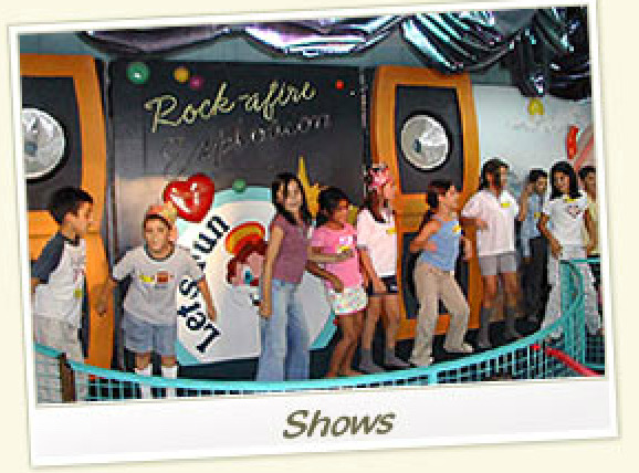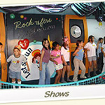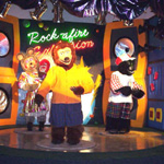 The show at Let's Fun was a full New Rock-afire Explosion, with a Karaoke add-on. The band was given custom outfits, most notably Beach Bear’s green and blue bowling uniform to go with the adjacent bowling alley. Fatz wore a Let’s Fun shirt, Mitzi wore a floral dress, Dook had yellow overalls and a hat, and Billy Bob was dressed in a yellow shirt with blue shorts. This show had no show selector.
